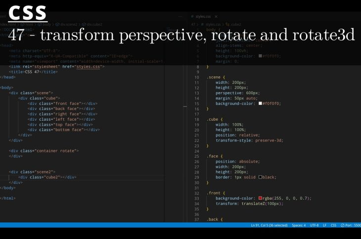 CSS 47 💻 transform perspective, rotate and rotate3d