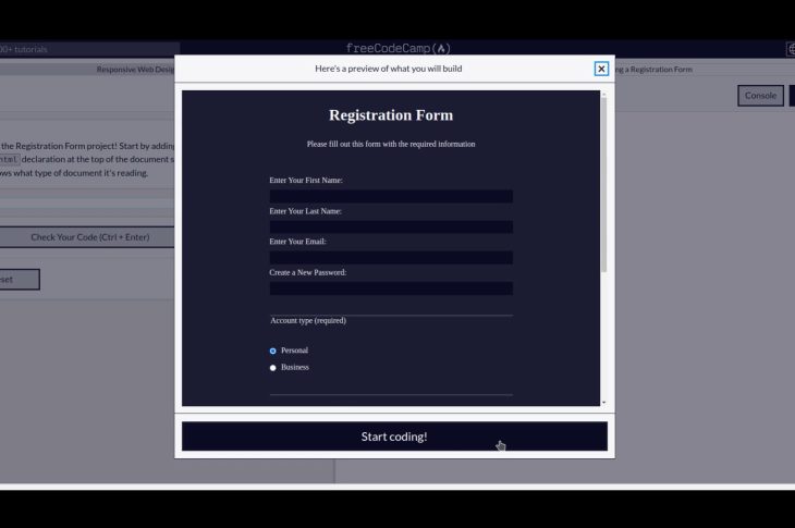FreecodeCamp Registration Form Responsive Web Design FreeCodeCamp π Responsive Web Design π Registration Form 1-65 full December 1, 2024