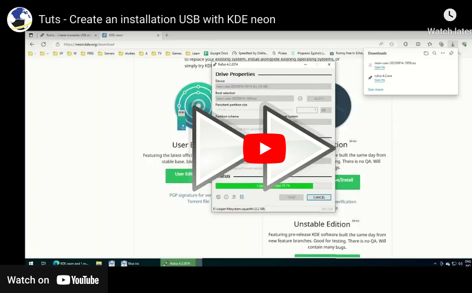 Create an installation USB with KDE neon