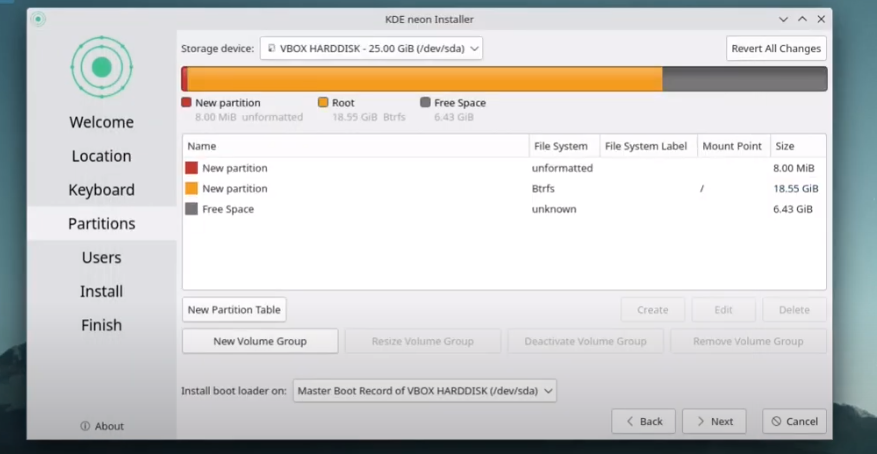 KDE neon Installation with Btrfs manual partitioning